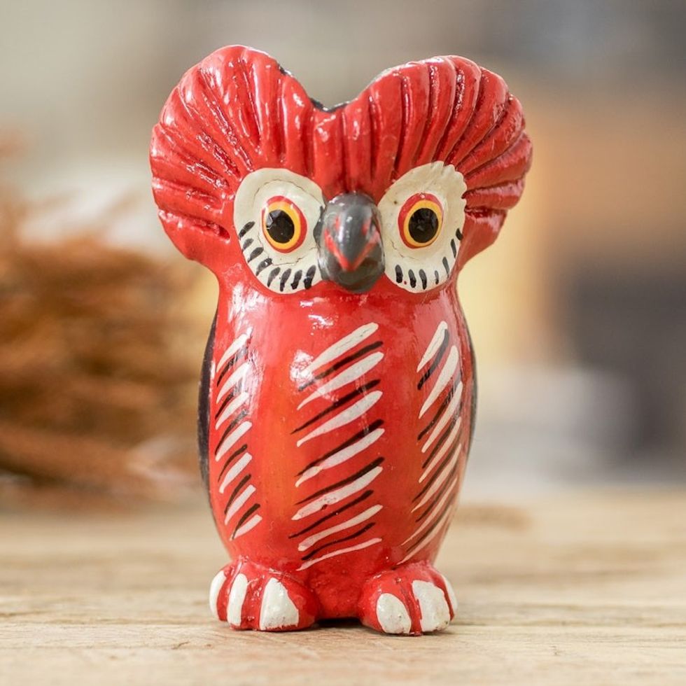 Small Ceramic Owl Figurine in Red Hand-Painted in Guatemala 'Vibrant Tecolote' Item ID: 2671771442
