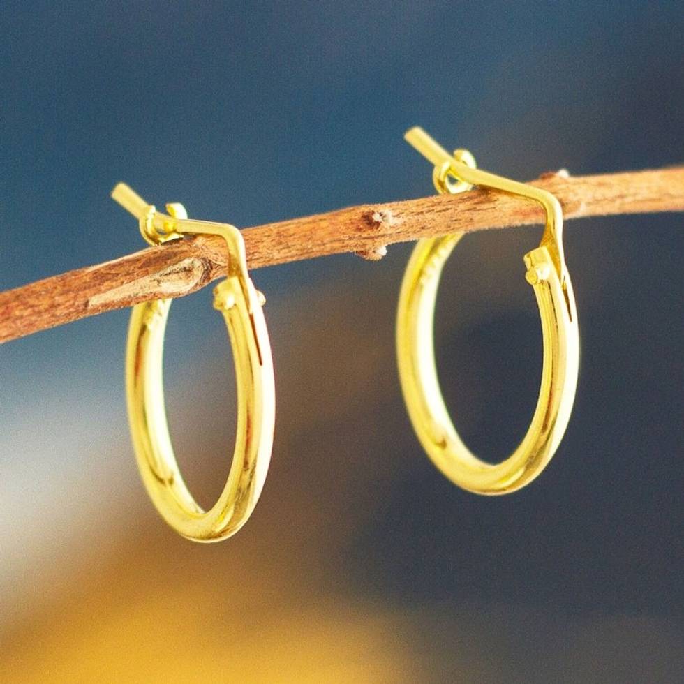 Small Gold Plated Hoop Earrings from Peru .7 Inch 'Always Classic' Item ID: 2671402214