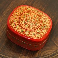 Small Red and Gold Papier Mache Box 'Kashmir Rendezvous' Item ID: 2671789604