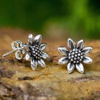 Small Sterling Silver Sun Flower Post Earrings from Thailand 'Sunflower Love' Item ID: 2669926365