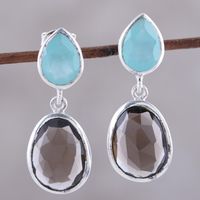 Smoky Quartz and Chalcedony Sterling Silver Dangle Earrings 'Dip Into Dusk' Item ID: 2671792475