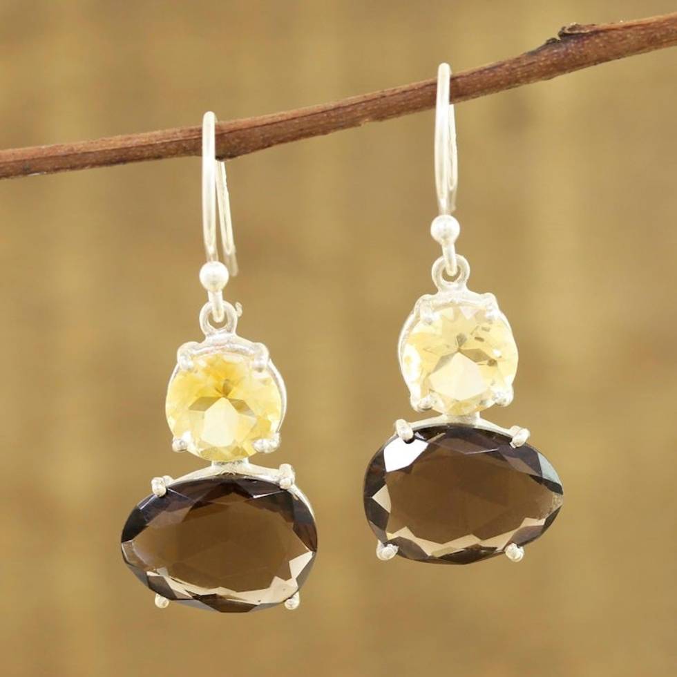 Smoky Quartz and Citrine Gemstone Dangle Earrings 'Regal Air' Item ID: 2669923785