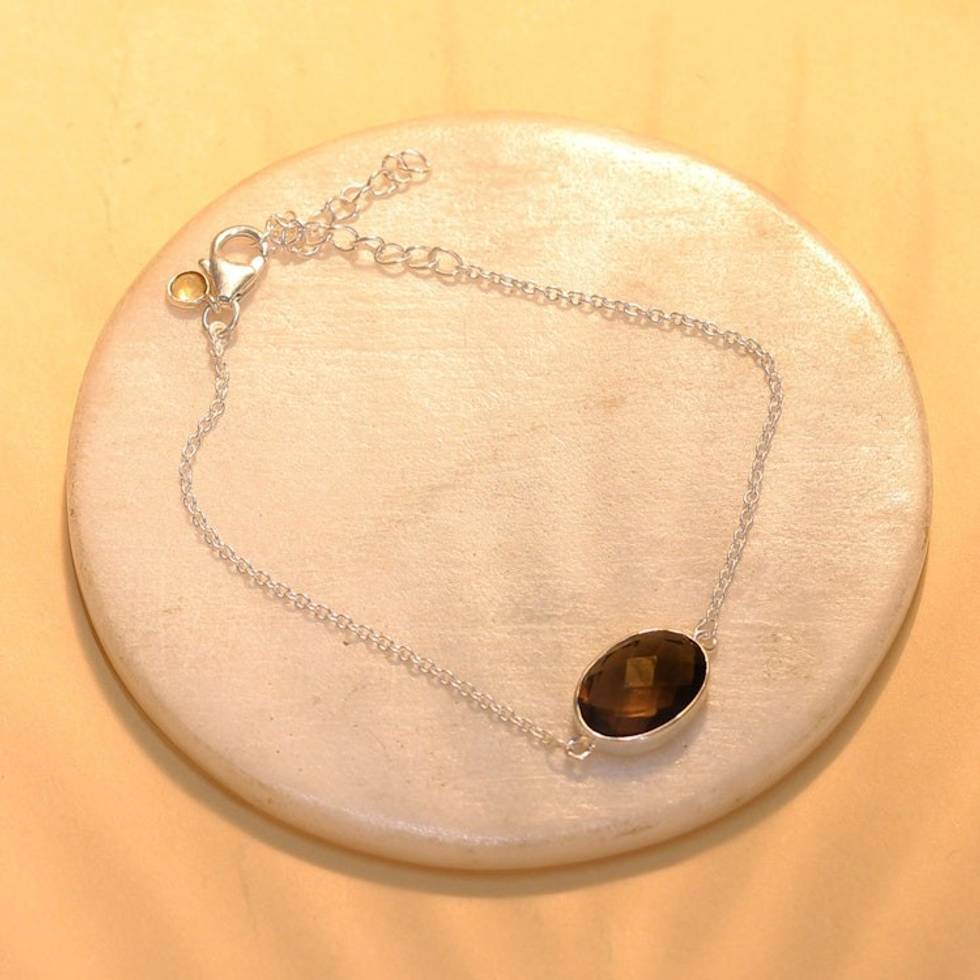Smoky Quartz and Citrine Pendant Bracelet from India 'Stylish Sparkle' Item ID: 2671792406