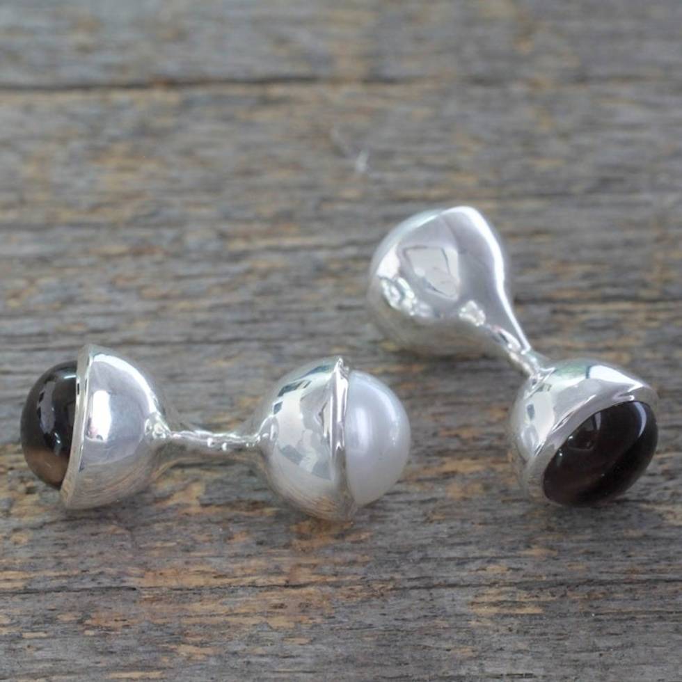 Smoky Quartz and Cultured Pearl Silver Cufflinks 'Luminous Mist' Item ID: 2671793278