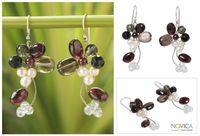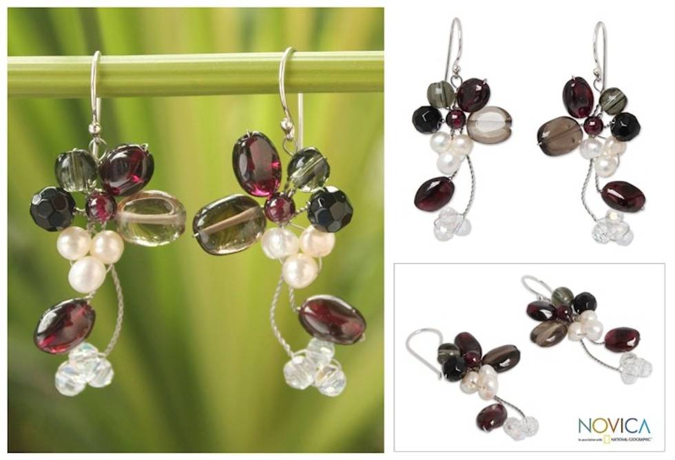 Smoky Quartz and Garnet Dangle Earrings 'Radiant Bouquet' Item ID: 2669927577