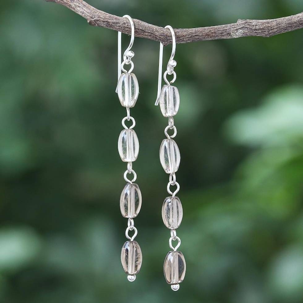 Smoky Quartz and Sterling Silver Dangle Earrings 'Cloudy Morning' Item ID: 2671800251