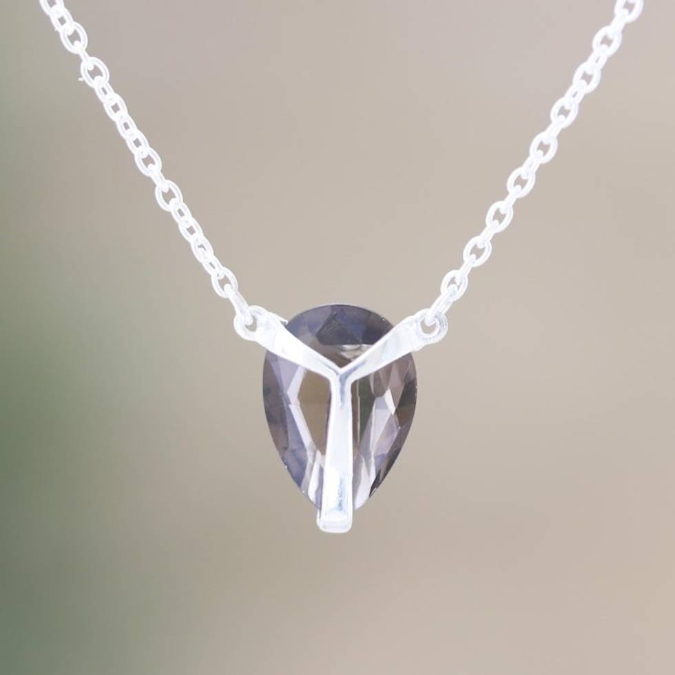 Smoky Quartz and Sterling Silver Pendant Necklace 'Air Kiss in Grey' Item ID: 2671787312