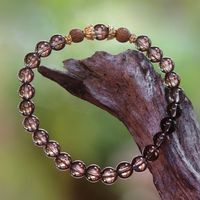 Smoky Quartz Beaded Stretch Bracelet with Wood Accents 'Batuan Tune' Item ID: 2671736602