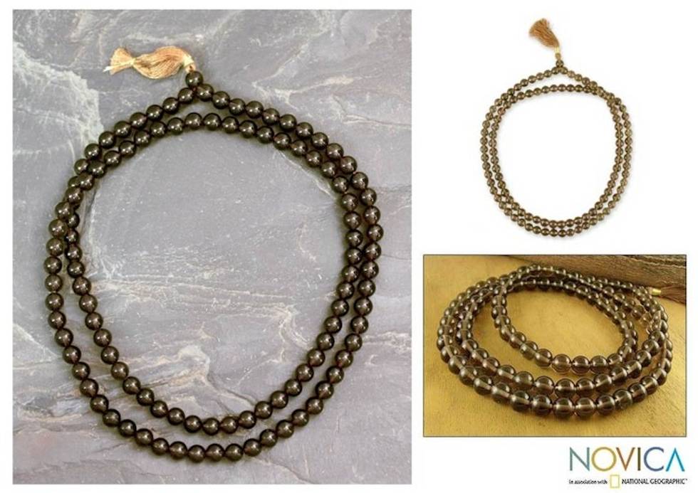 Smoky Quartz Rosary Jap Mala Indian Prayer Necklace 'Pray' Item ID: 2671794426