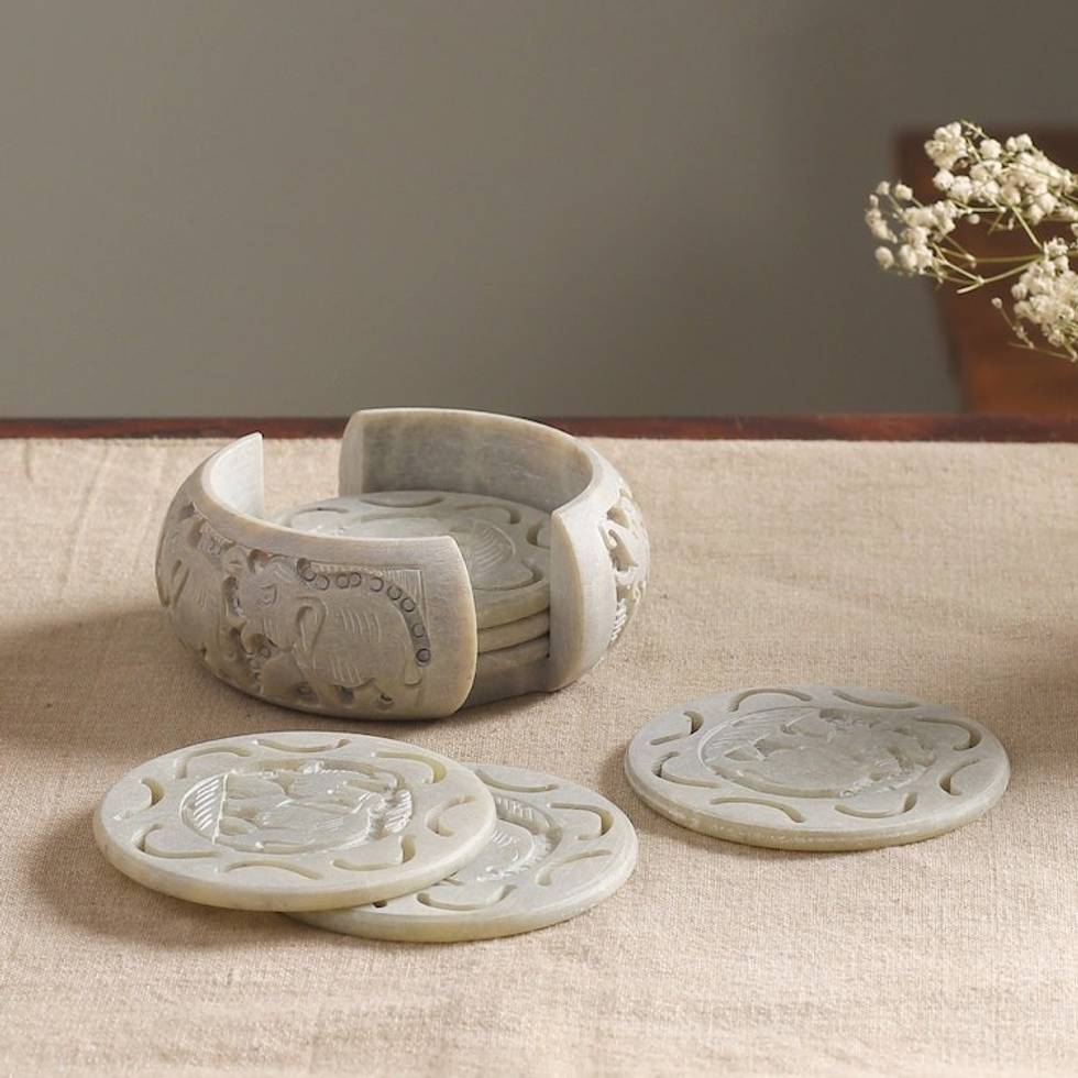 Soapstone coasters Set of 6 'Elephant Safari' Item ID: 2671794605