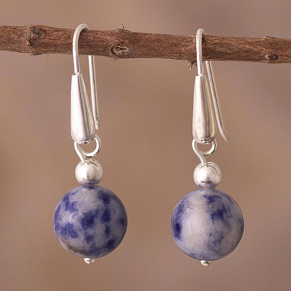 Sodalite and Sterling Silver Dangle Earrings from Peru 'Gentle Globe' Item ID: 2671689617