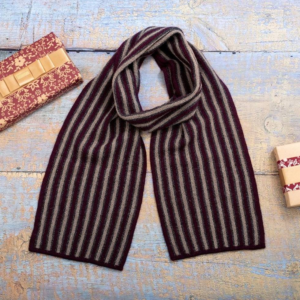 Soft Striped 100 Alpaca Scarf in Bordeaux and Grey Hues 'Wine Paths' Item ID: 2671697869