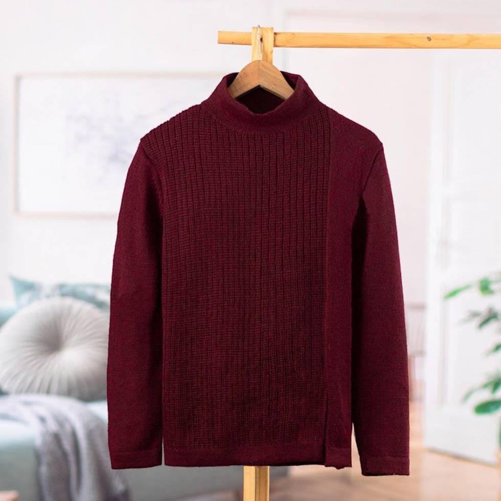 Soft Striped Burgundy Alpaca Blend Pullover Sweater 'Burgundy Today' Item ID: 2671697792