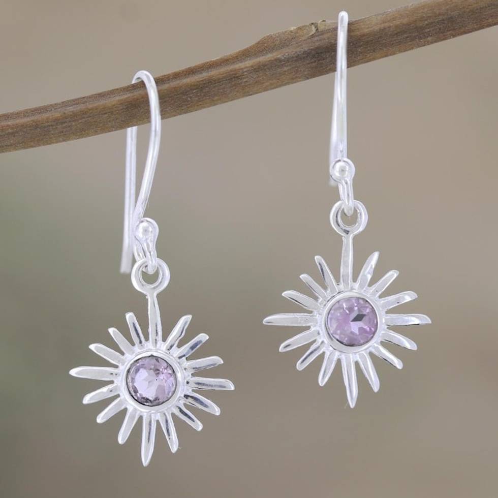 Solar-Inspired Sterling Silver Earrings with Amethyst 'Lavender Star' Item ID: 2669925646