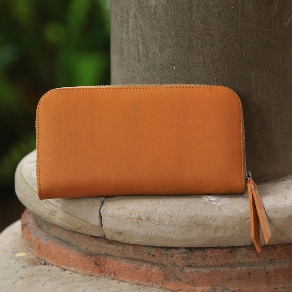 Solid Leather Clutch in Sunrise Crafted in Bali 'Polosan Sunrise' Item ID: 2671736416