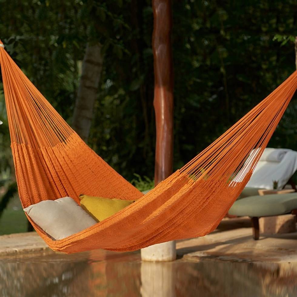 Solid Maya Orange Hand Woven Cotton Hammock Single 'Mango Paradise' Item ID: 2671808766