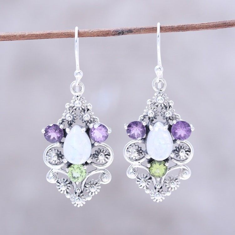 Sparkling Multi-Gemstone Dangle Earrings from India 'Sparkling Glory' Item ID: 2671792353