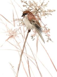 Sparrow in the Field, original watercolor painting by artist Suren Item ID: 2674183257
