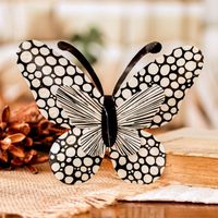 Speckled Butterfly-Shaped Steel Wall Art in Black and White 'Flutter in the Moonlight' Item ID: 2671769131