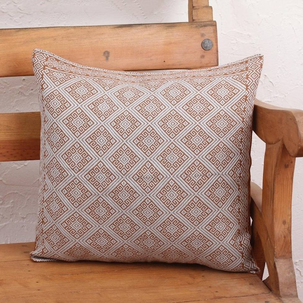 Spice Brown and Grey Diamond Brocade Cotton Cushion Cover 'Earthen Trellis' Item ID: 2671808582
