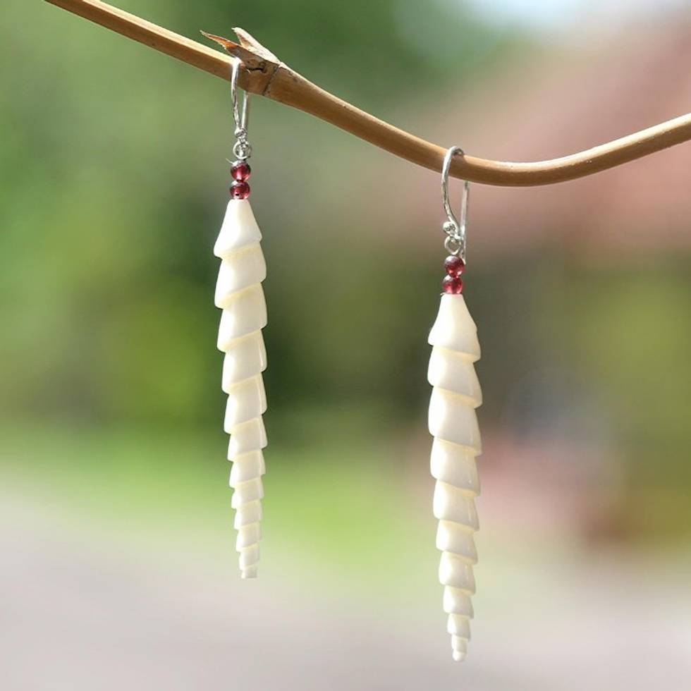 Spiral Bone and Amethyst Dangle Earrings from Bali 'Mystical Spirals' Item ID: 2671820814