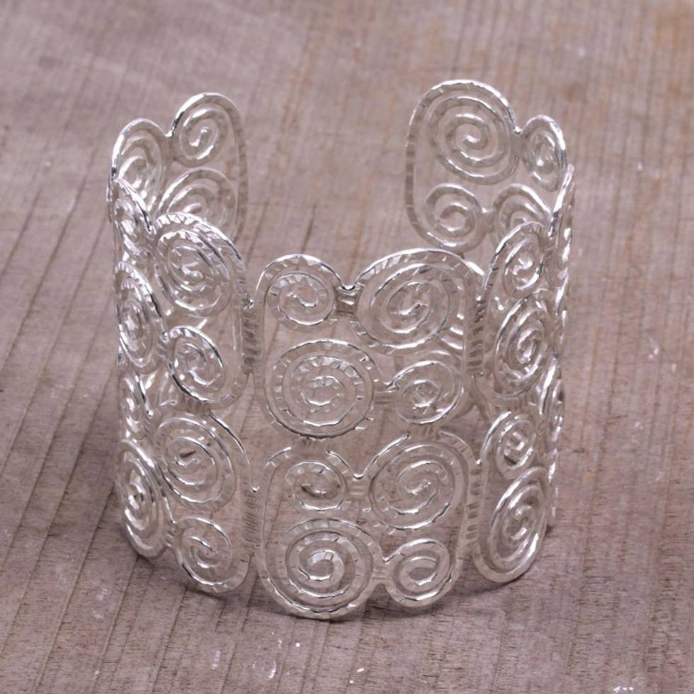 Spiral Motif Sterling Silver Cuff Bracelet from Bali 'Swirling Lattice' Item ID: 2671820805
