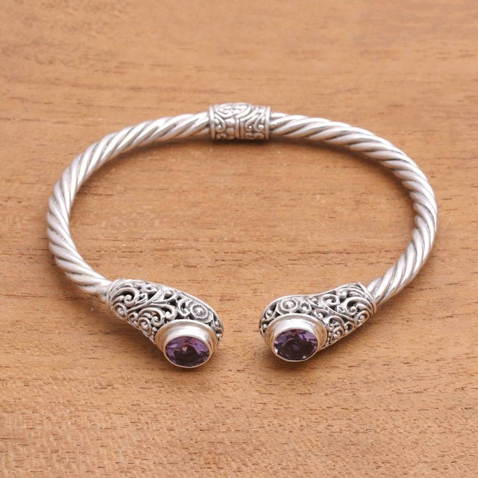 Spiral Pattern Amethyst Cuff Bracelet from Bali 'Royal Pattern' Item ID: 2671744721