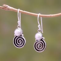 Spiral Pattern Cultured Pearl Dangle Earrings from Bali 'Spiral Moon' Item ID: 2671736721