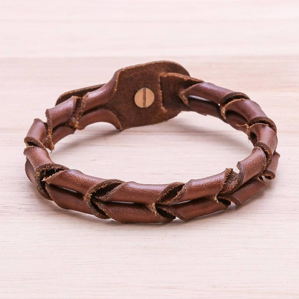 Spiral Pattern Leather Wristband Bracelet from Thailand 'Brown Coil' Item ID: 2671798571