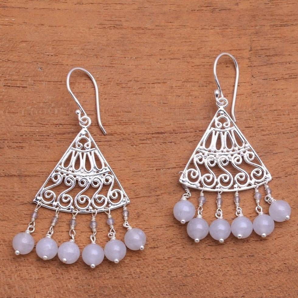 Spiral Pattern Moonstone Chandelier Earrings from Bali 'Spiral Fascination' Item ID: 2671737131