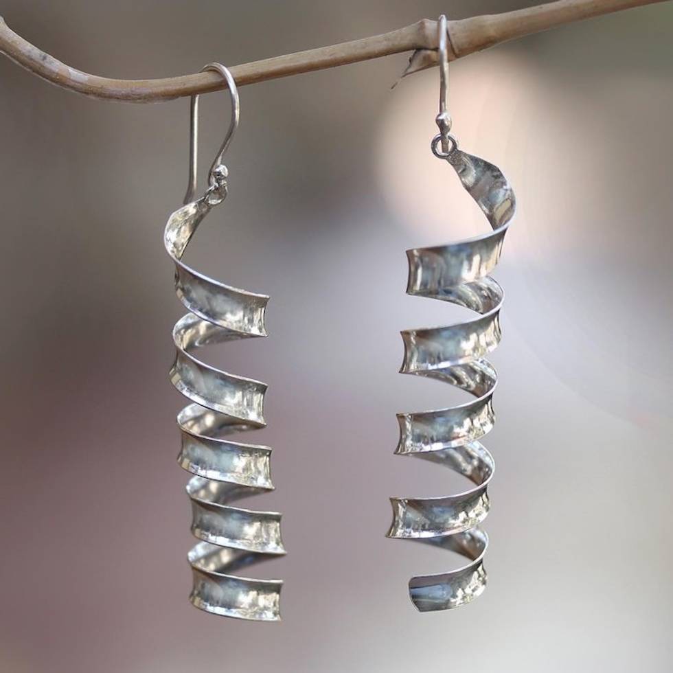 Spiral-Shaped Sterling Silver Dangle Earrings from Bali 'Spiral Shine' Item ID: 2671736901