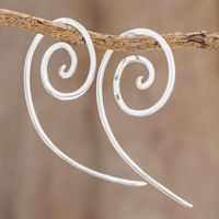 Spiral-Shaped Sterling Silver Half-Hoop Earrings 'Aura Spirals' Item ID: 2669933205