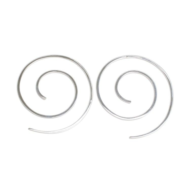 Spiral Sterling Silver Half-Hoop Earrings from Guatemala 'Fibonacci's Beauty' Item ID: 2671777071