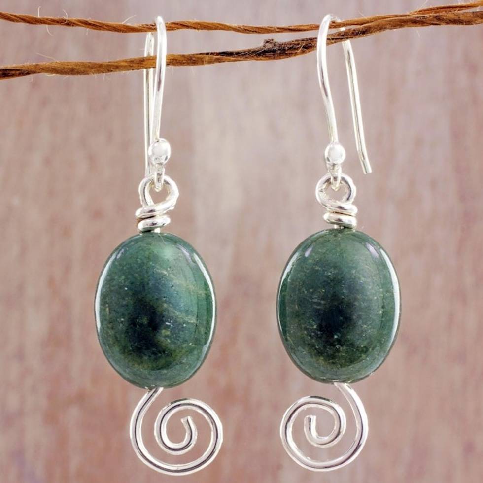 Spiral Theme Sterling Silver and Green Jade Earrings 'Green Maya Galaxy' Item ID: 2671778084