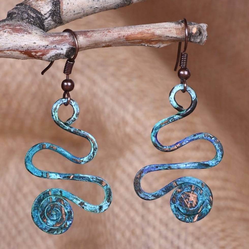 Spiral-Themed Copper Dangle Earrings with Oxidized Finish 'Whirlwind Splendor' Item ID: 2669941715