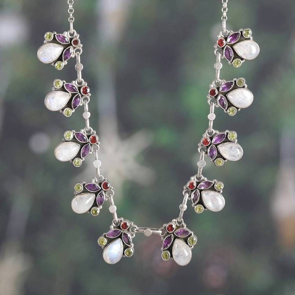 Spring-Themed 11-Carat Faceted Multi-Gemstone Link Necklace 'Garden of Delhi' Item ID: 2676665314