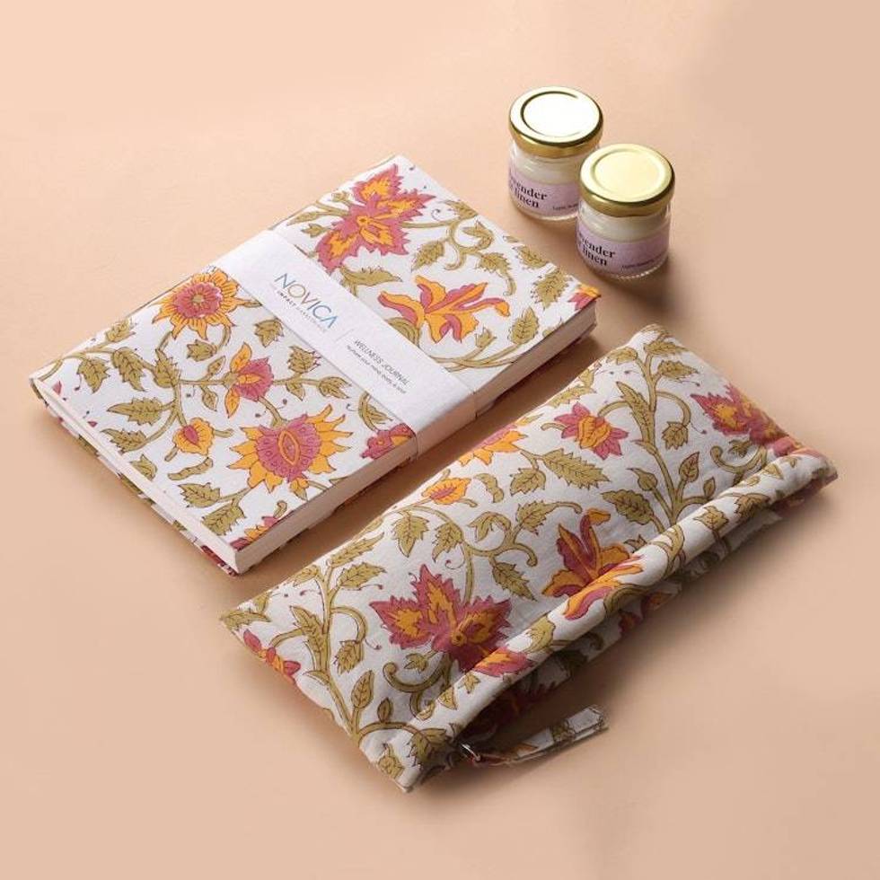 Spring-Themed Cotton Journal and Handmade Soy Wax Candle Set 'Primaveral Splendor' Item ID: 2676664488