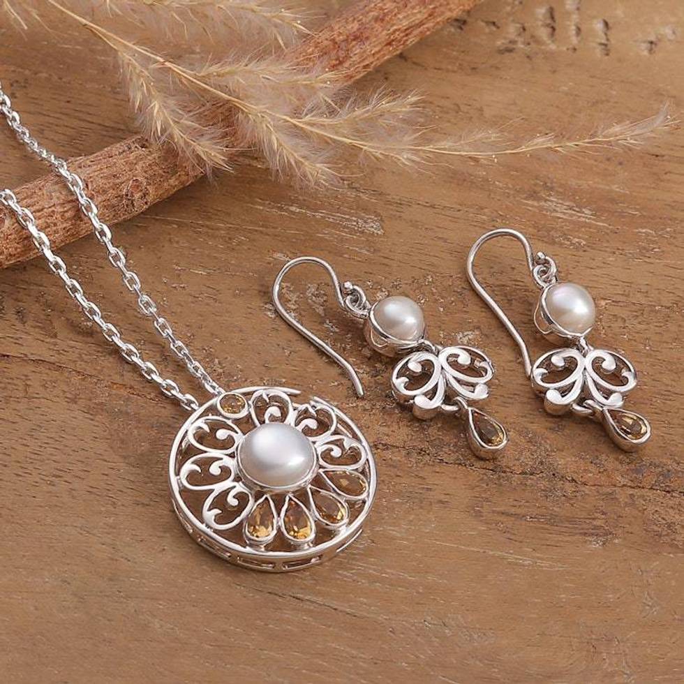 Spring-Themed Cream Pearl and Faceted Citrine Jewelry Set 'Prosperous Sparkle' Item ID: 2676664439