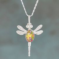 Spring-Themed Dragonfly Pendant Necklace with Wild Flowers 'Yellow Anahuac Dragonfly' Item ID: 2676647028