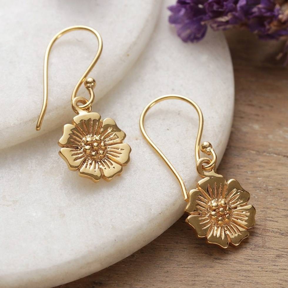 Spring-Themed Floral Brass Dangle Earrings from India 'Floral Elation' Item ID: 2671625467