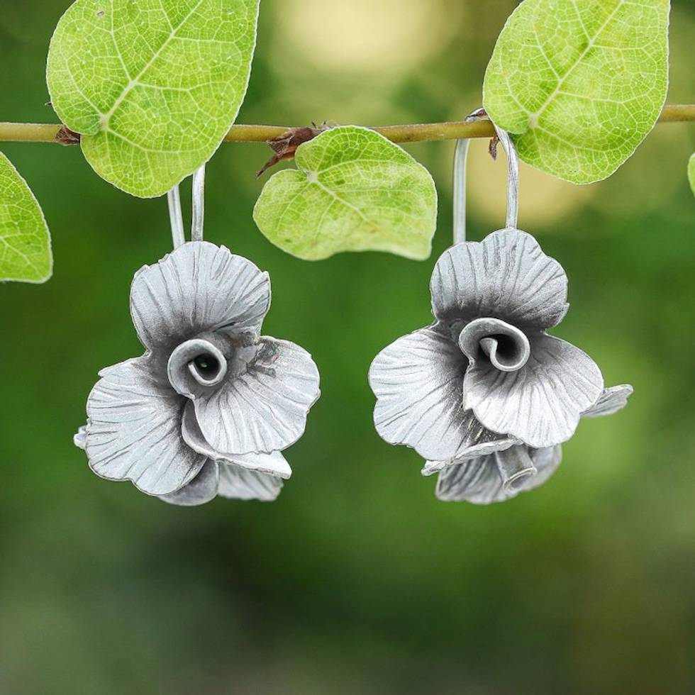 Spring-Themed Floral Silver Drop Earrings from Thailand 'Blooming Wonder' Item ID: 2671646738