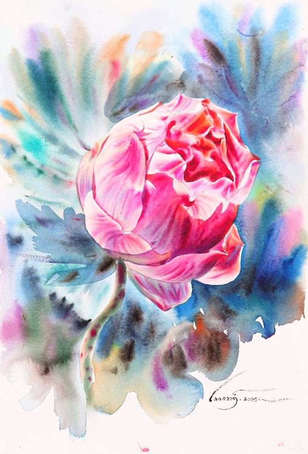 Spring-Themed Impressionist Watercolor Lotus Bloom Painting 'Sattabongkot Serenity' Item ID: 2676652950