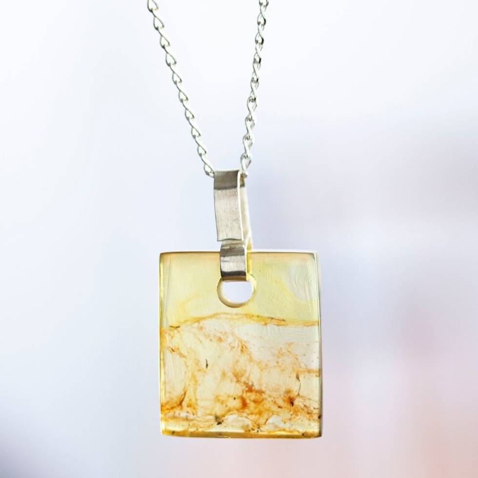 Square Amber Pendant Necklace from Mexico 'Simplicity Squared' Item ID: 2669940081
