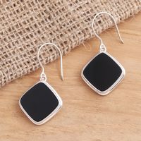 Square Bezel Set Black Onyx Dangle Earrings 'Black Squares' Item ID: 2671745688