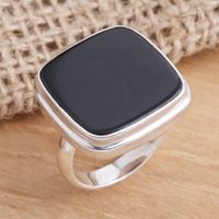 Square Black Onyx Cabochon Sterling Silver Cocktail Ring 'Black Tablet' Item ID: 2669923467