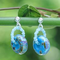 Square Blue and Brown Handblown Glass Beaded Dangle Earrings 'Dazzling Beauty' Item ID: 2671797045