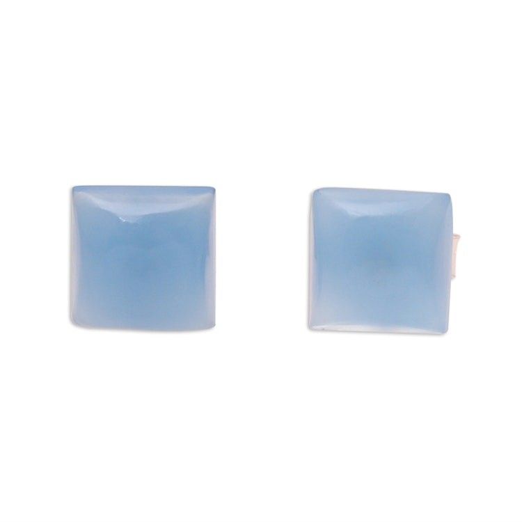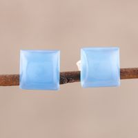 Square Blue Chalcedony Stud Earrings from India 'Contemporary Corners' Item ID: 2671792767