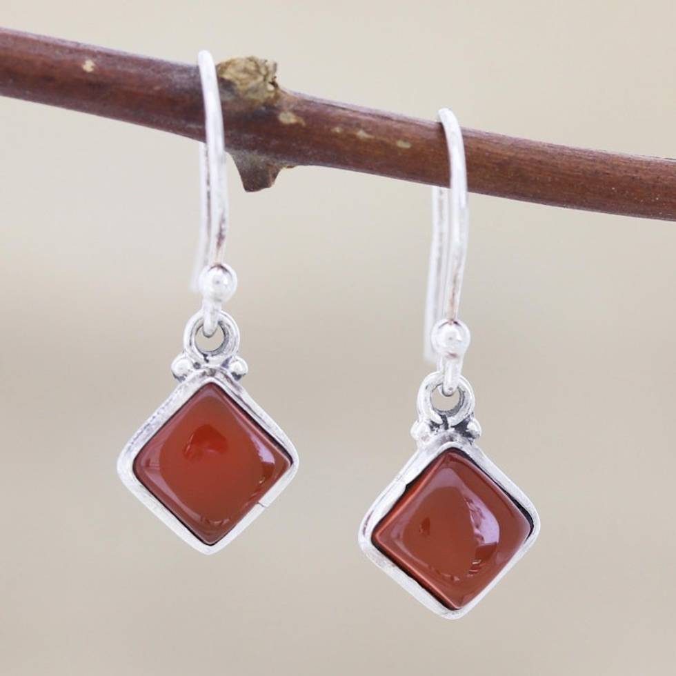 Square Carnelian Cabochon Dangle Earrings 'Happy Kites' Item ID: 2669925378