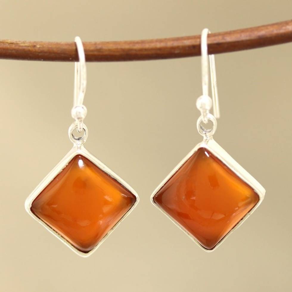 Square Carnelian Dangle Earrings from India 'Honey Squares' Item ID: 2669943929