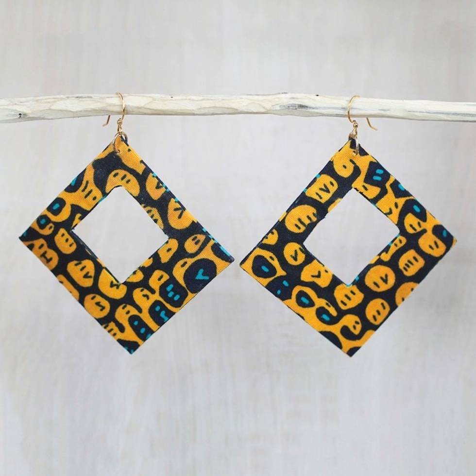 Square Cotton Dangle Earrings in Orange from Ghana 'Orange Aseda' Item ID: 2671805854
